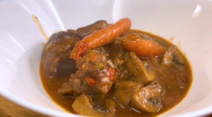 Once your veal stew is ready, give it a gentle stir before serving. The sauce will be rich, savoury, and filled with tender chunks of veal and sweet carrots.